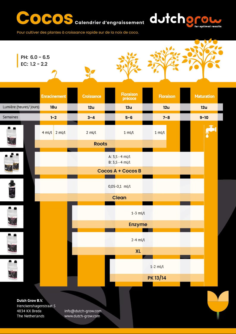 - L'engrais DutchGrow Cocos A&B peut être utilisé aussi bien en phase de croissance qu'en phase de floraison.